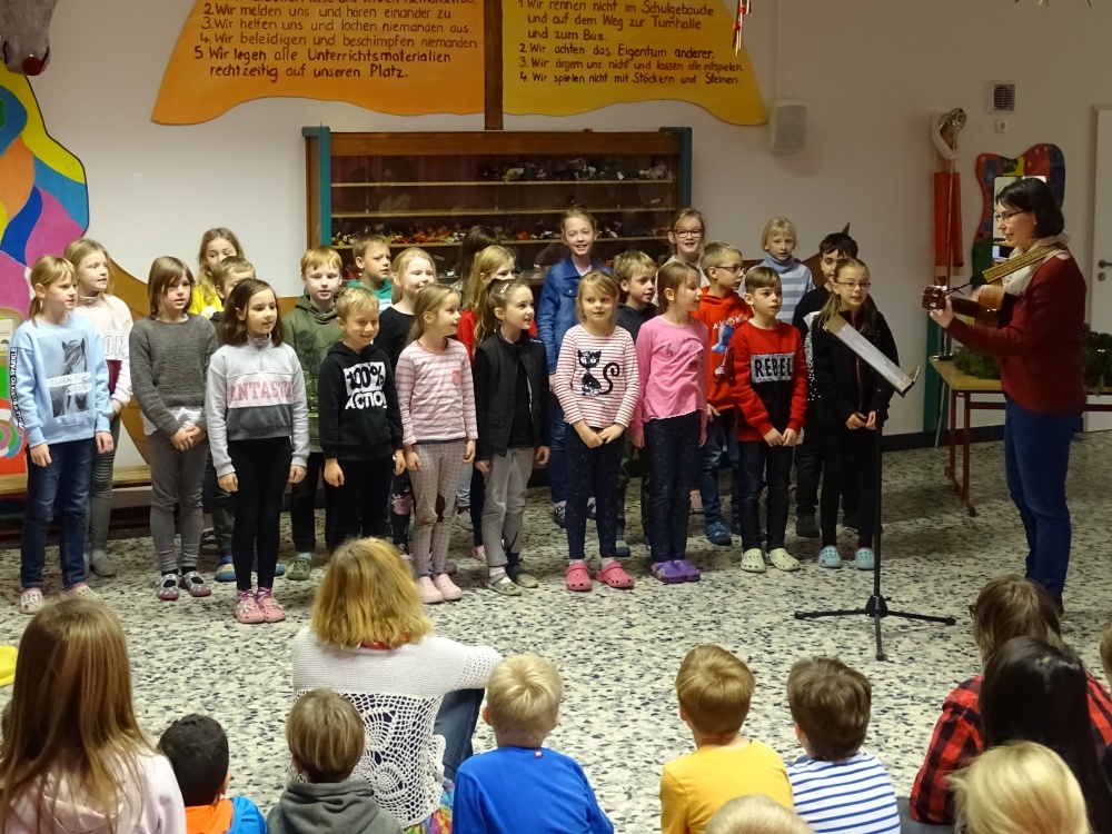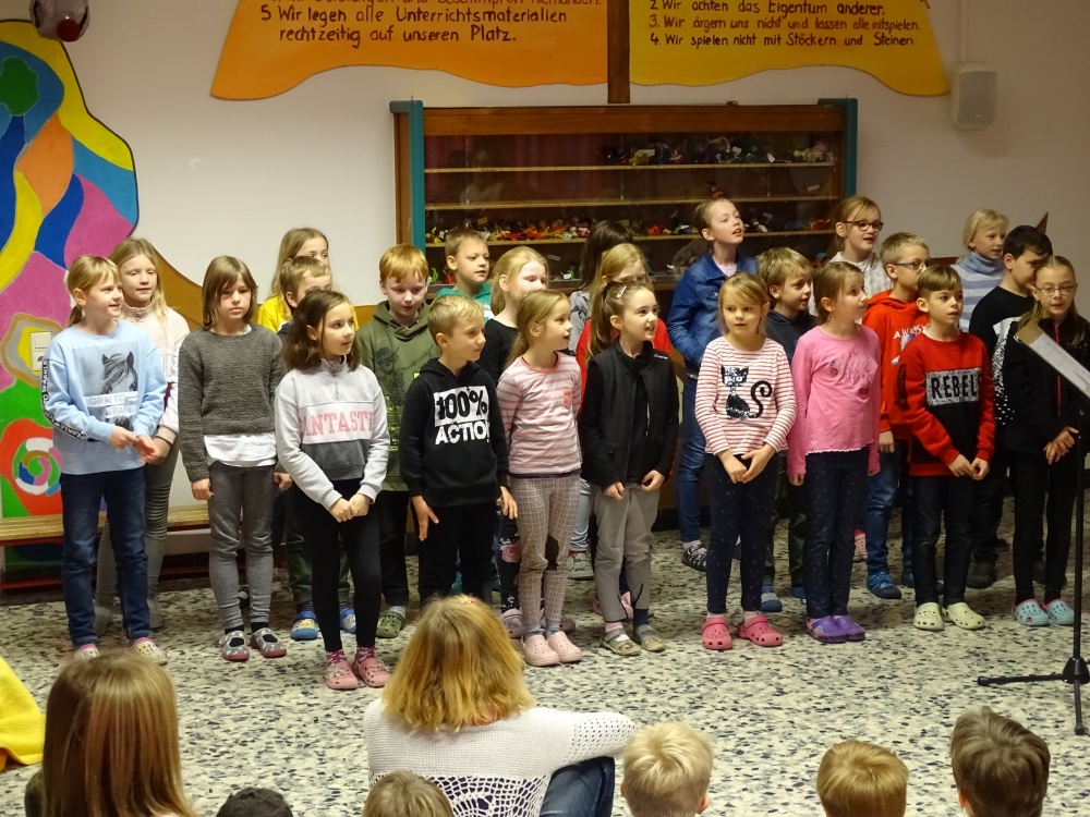 Einen sehr schönen Auftritt hatte unser Chor! Mit strahlenden Gesichtern und hochkonzentriert sangen die Kinder uns zwei Weihnachtslieder und freuten sich über den begeisterten Applaus.