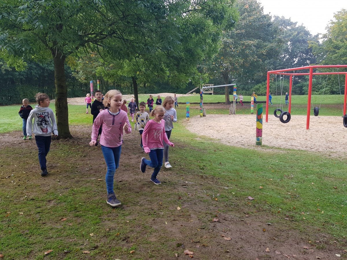 Kaum sind unsere neuen Erstklässlerinnen und Erstklässler bei uns, werden sie im Sportunterricht von ihrer Sportlehrerin Frau Bodmann auf das Ausdauerlaufen vorbereitet. Jetzt kurz vor den Herbstferien nutzten wir für unsere Klassen 1 und 2 ein paar trockene Momente, damit die Kinder ihre Fähigkeiten zeigen konnten.
