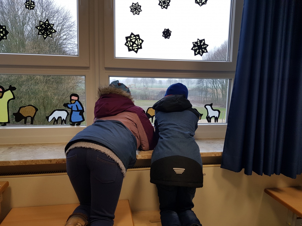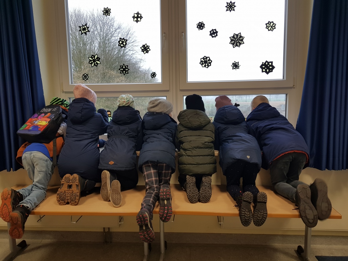 Kaum hatten sich die Kinder in den vereinbarten Räumen mit ihren Klassenleitungen und einer weiteren Betreuungsperson aus dem Kreis der pädagogischen Mitarbeiterinnen und FSJlerinnen zusammengefunden, sich gegenseitig begrüßt und miteinander letzte Absprachen getroffen, suchten sie sich einen guten Platz an den Fenstern, um das Geschehen draußen genau verfolgen zu können.