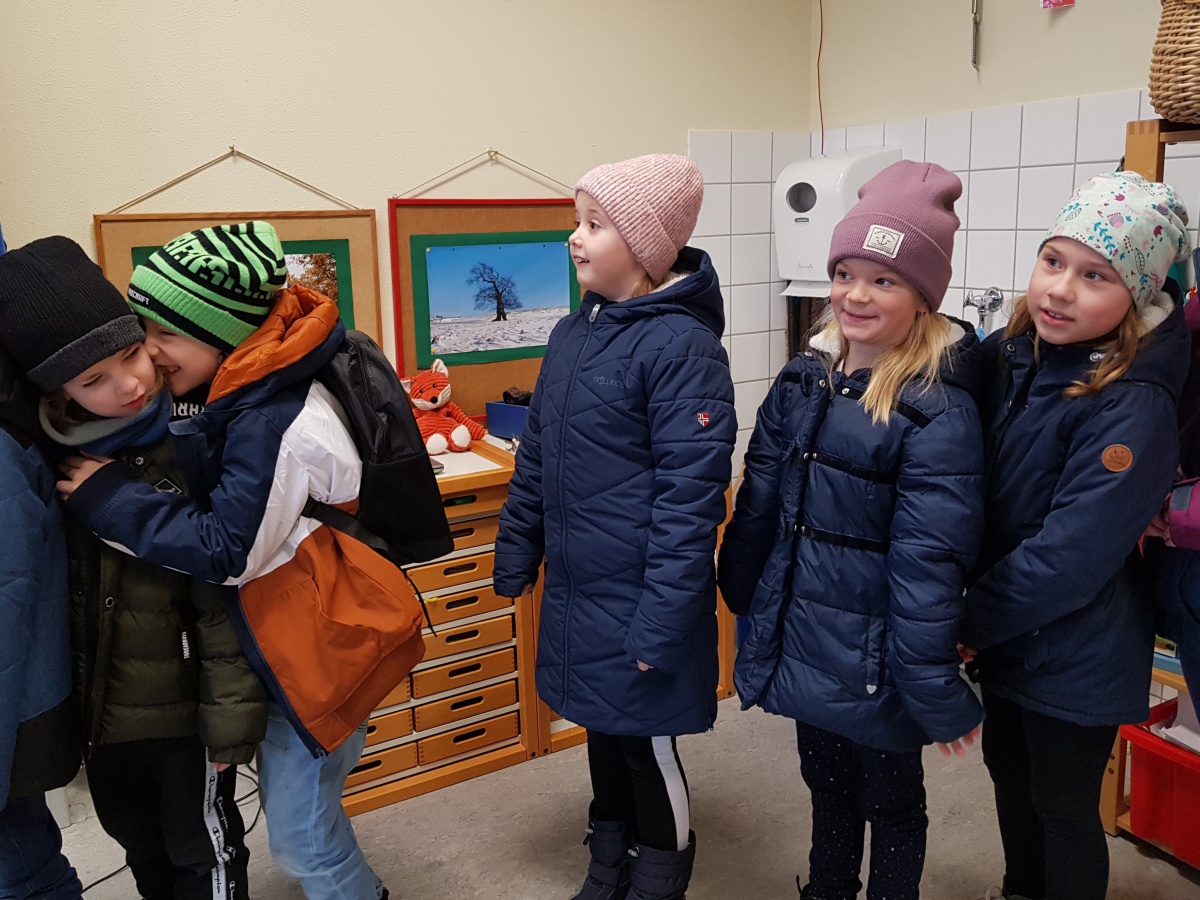 Als nach einiger Zeit die nasse Kälte unter die Jacken und Hosen kroch, waren schließlich alle ''geborgen''. Die Feuerwehrleute bedankten sich bei den Kindern und ihren Begleitpersonen, Frau Klieber bedankte sich im Namen aller bei den Feuerwehrleuten und die Kinder klatschten als Dankeschön.
