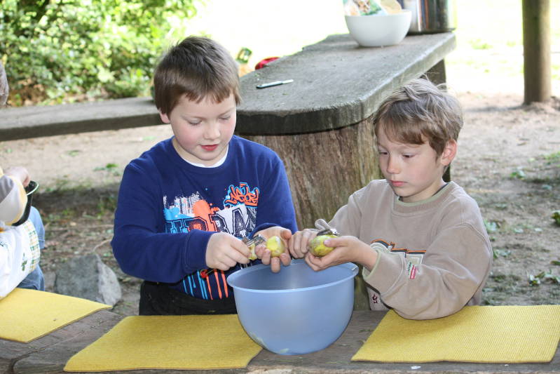 hatte jedes Kind einen Beutel Kartoffeln geschenkt bekommen – und diese wollten die Kinder unbedingt gemeinsam verarbeiten.