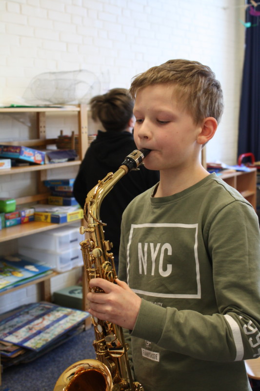 Am 1. April, besuchte uns die Bläserklasse der KGS aus Sittensen. Auch zwei ehemalige Kinder unserer Schule waren dabei und führten den Zuhörer/innen aus unseren 4. Klassen stolz ihr Können auf ihren Instrumenten vor. Im Gepäck hatten die Schülerinnen und Schüler Holzblas- und Blechblasinstrumente – Trompeten, Saxophone, Querflöten, Klarinetten …