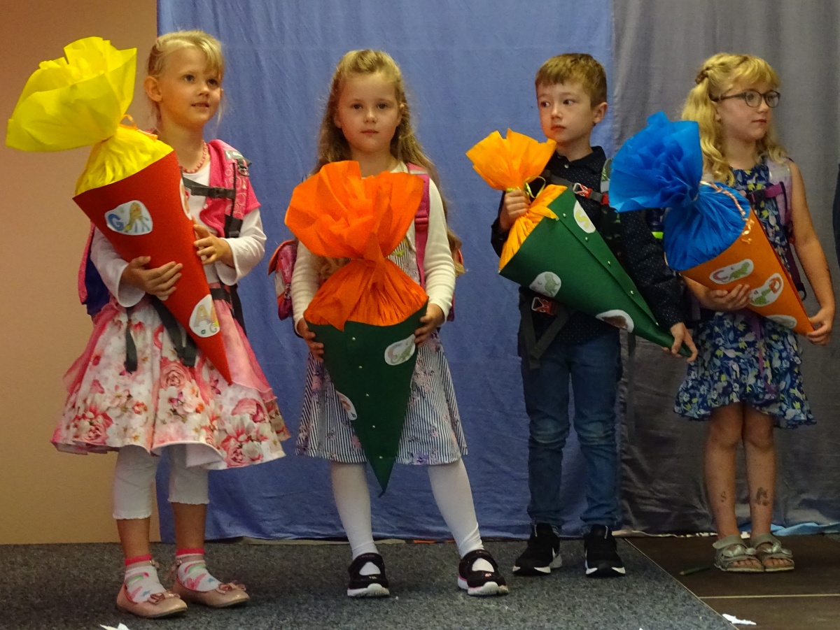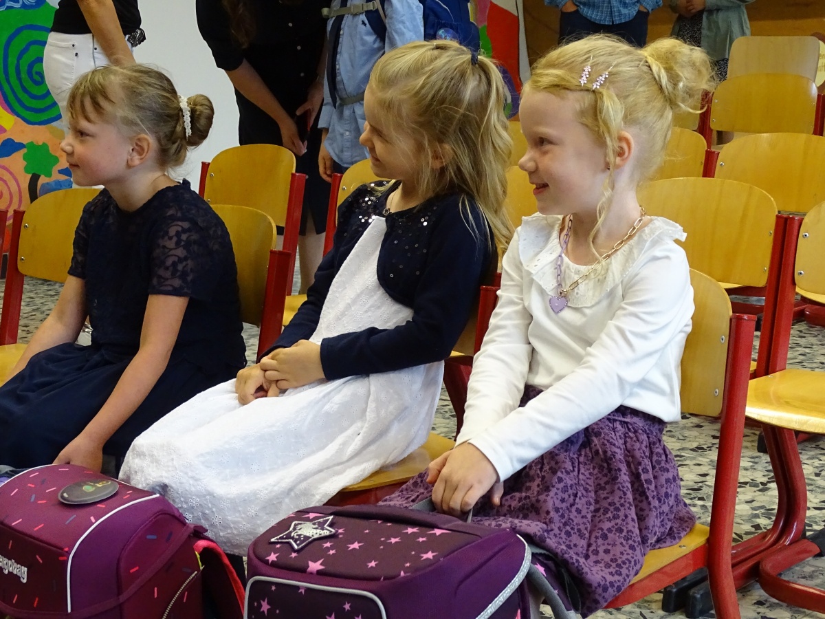 Ganz besonders wünschen wir dies auch all unseren Kindern aus der Ukraine, die wir am Montag willkommen heißen werden. Mit Rücksicht auf ihre noch wenigen Deutschkenntnisse und darauf, dass sie unsere Feier als verwirrend erleben könnten und sich sehr fremd fühlen würden, haben wir in Rücksprache mit den Eltern überlegt, dass sie am Montag ihre eigene, kleine Einschulung erleben sollen.