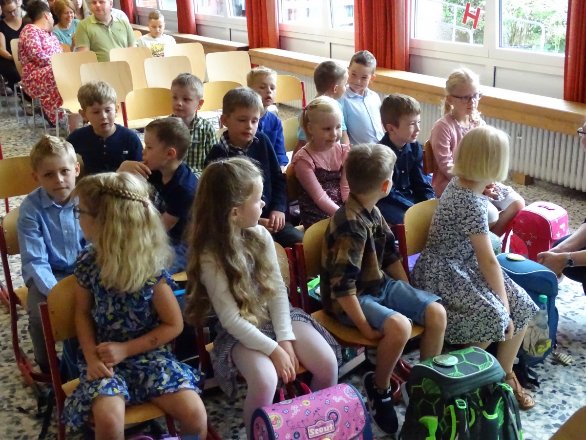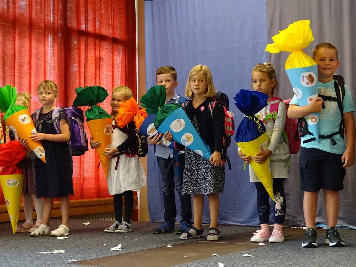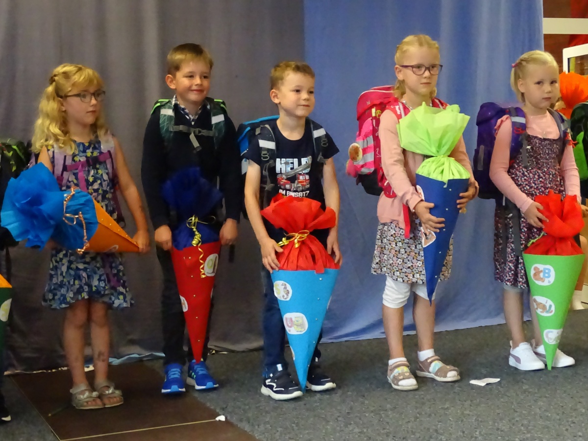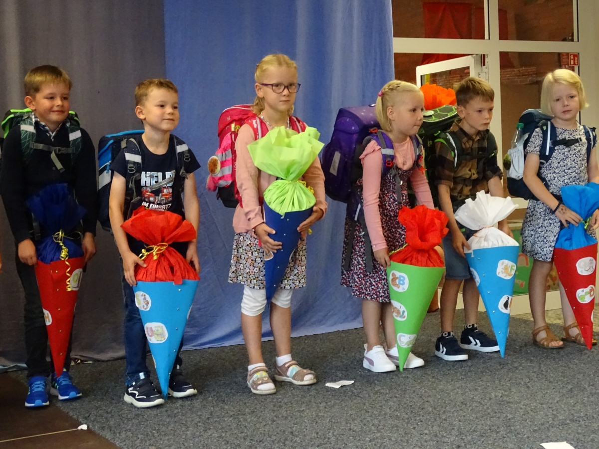 Nach mehreren Jahren mit Corona und ihren Einschränkungen konnten wir zum ersten Mal wieder gemeinsamen einschulen: zwei Klassen der Grundschule und eine Klasse der Helga-Leinung-Schule.