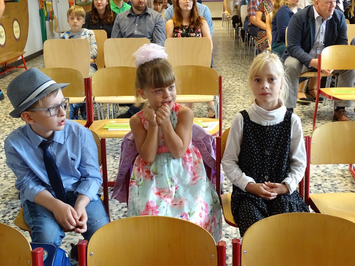 Unsere neuen Erstklässlerinnen und Erstklässler in den ersten Reihen verfolgten lachend das Geschehen und unsere Schauspielerinnen und Schauspieler verbeugten sich am Ende stolz und strahlend.