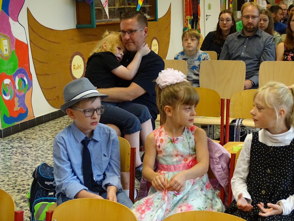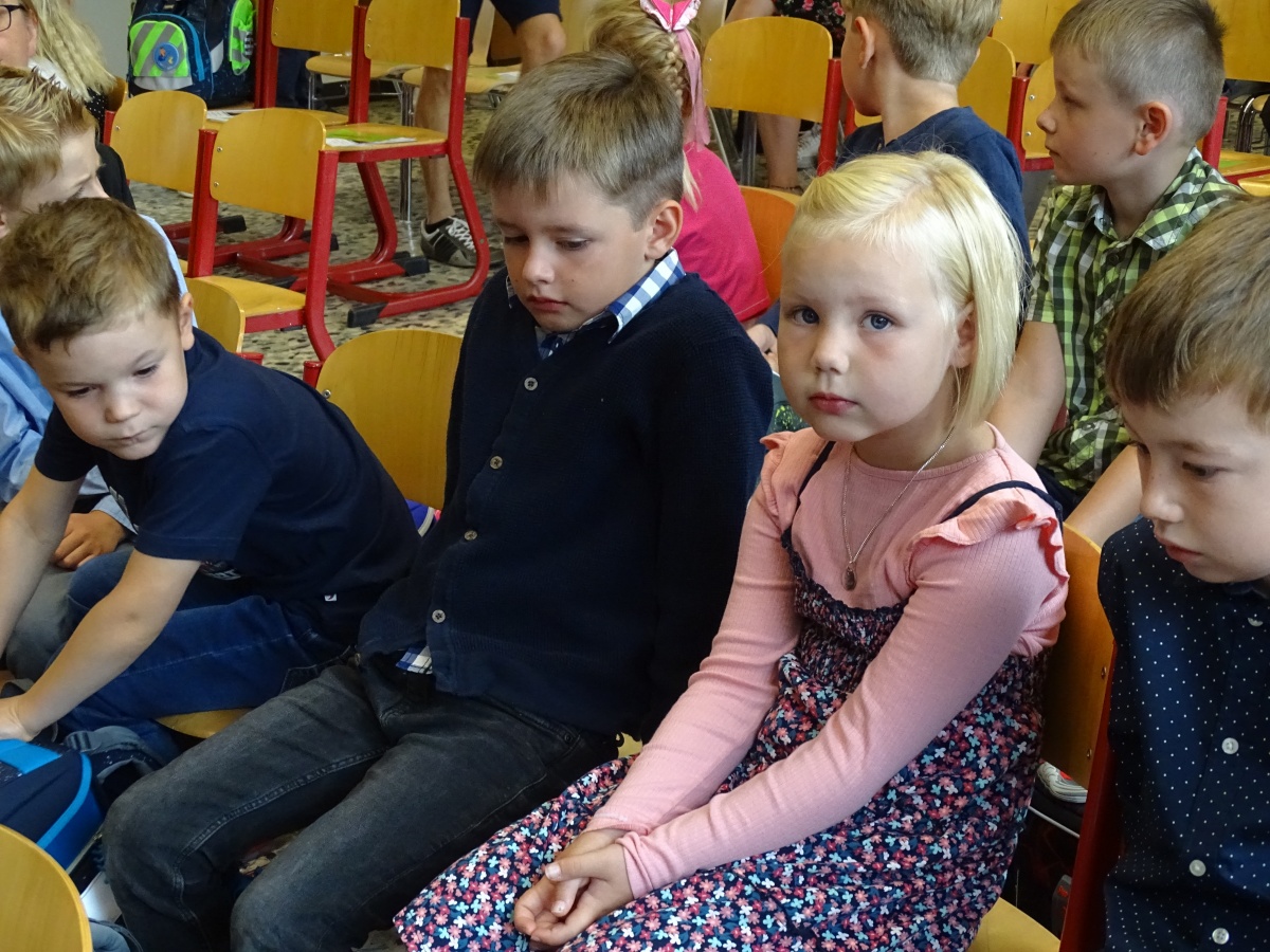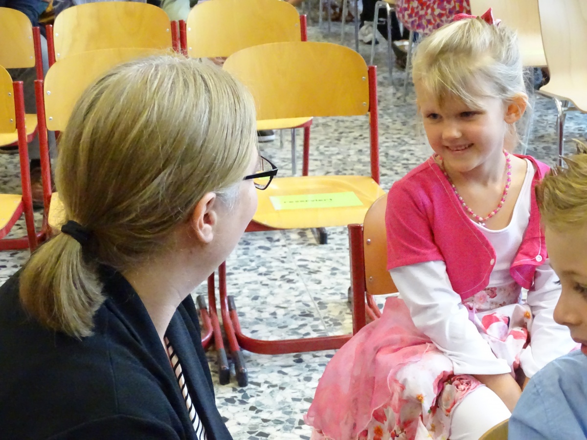 Frau Nadjé, Frau Griep, Frau Albrecht und Herr Gohde nahmen die Kinder in Empfang und setzten sich mit ihnen in die ersten Reihen. Nach ein paar liebevoll-zugewandten Worten waren bei den meisten Kindern schnell die größten Hemmschwellen überwunden.