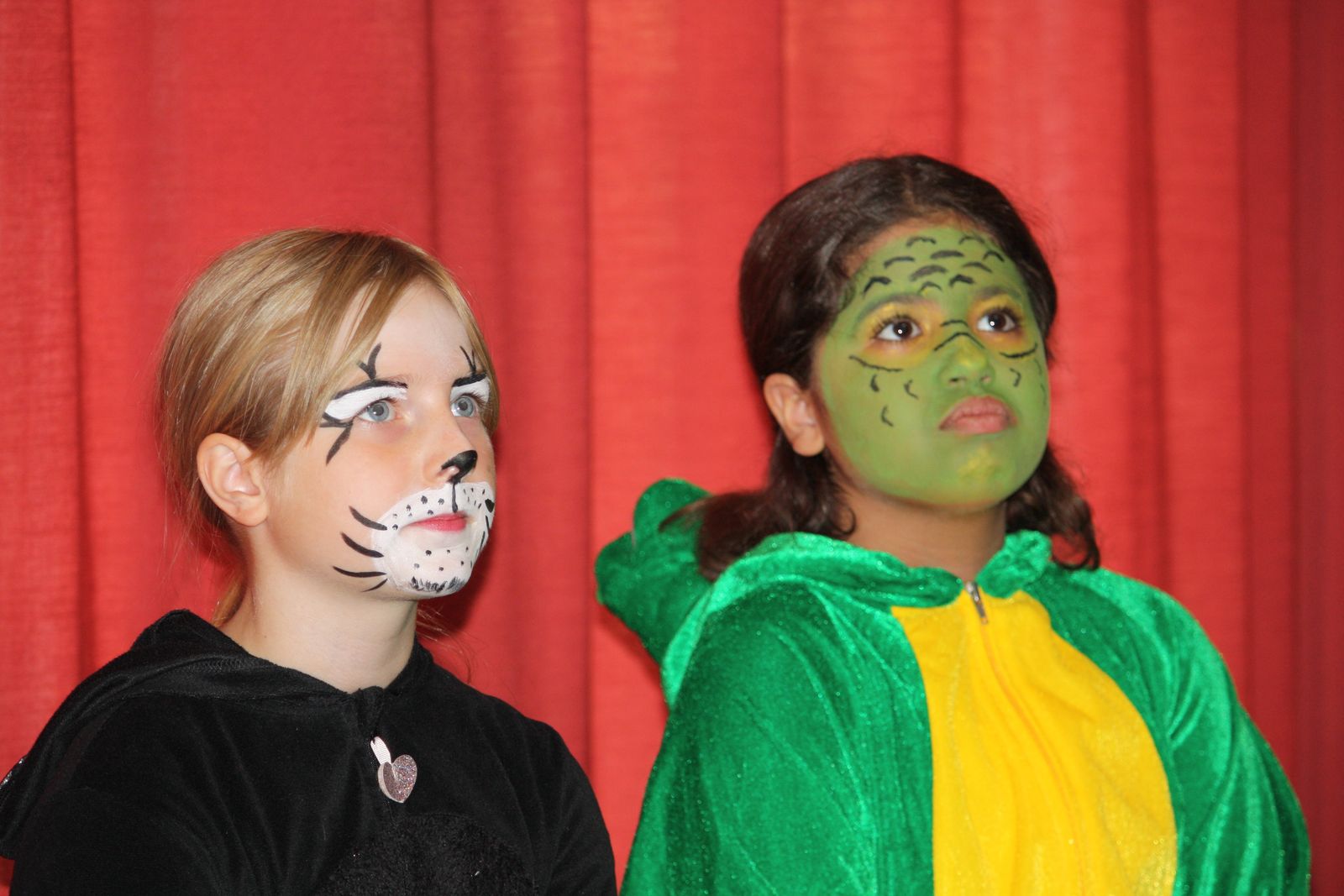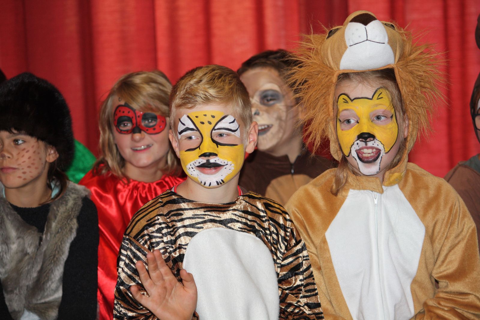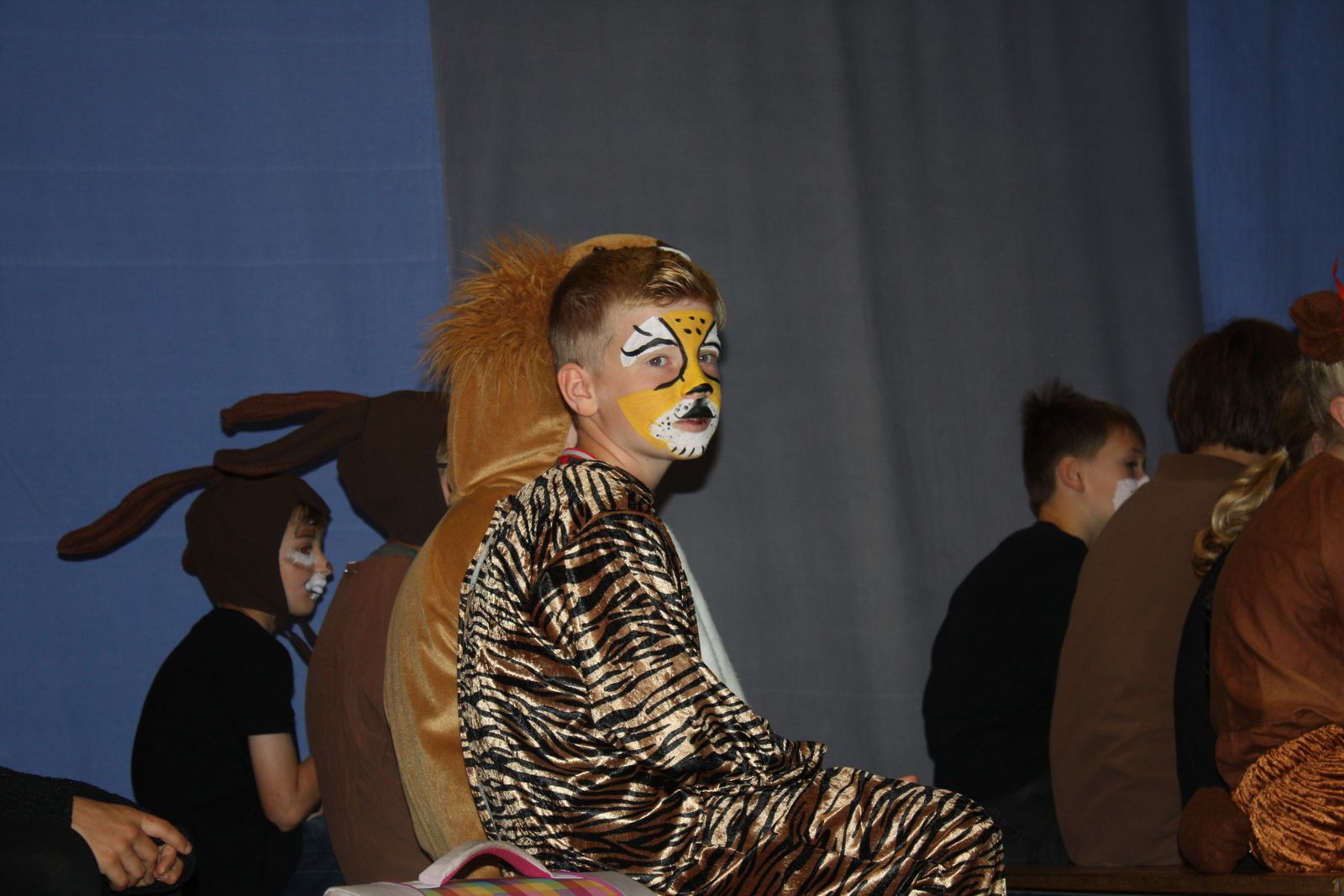 Die Lehrerin Frau Fuchs, die einerseits den Ruf einer strengen Lehrerin hatte, andererseits aber allen Kindern sehr zugewandt war, wusste ganz genau, wie sie ihren neuen Schülerinnen und Schülern ihre Ängste nehmen konnte. Sie forderte jeden einzelnen auf zu zeigen, was er gerne machte. Und so sprang der Löwe Seil, tanzten die Hasen-Zwillinge, spielte der Schmetterling Xylophon, boxte das Känguru und sang das Krokodil aufgeregt, aber bewegend ein Solo. Am Ende des Stückes hatte der kleine Tiger seine Ängste bewältigt und er freute sich auf die Schule - als einen Ort des Lernens, aber besonders auch als einen Ort der Begegnung mit anderen Tieren und neuen Herausforderungen.