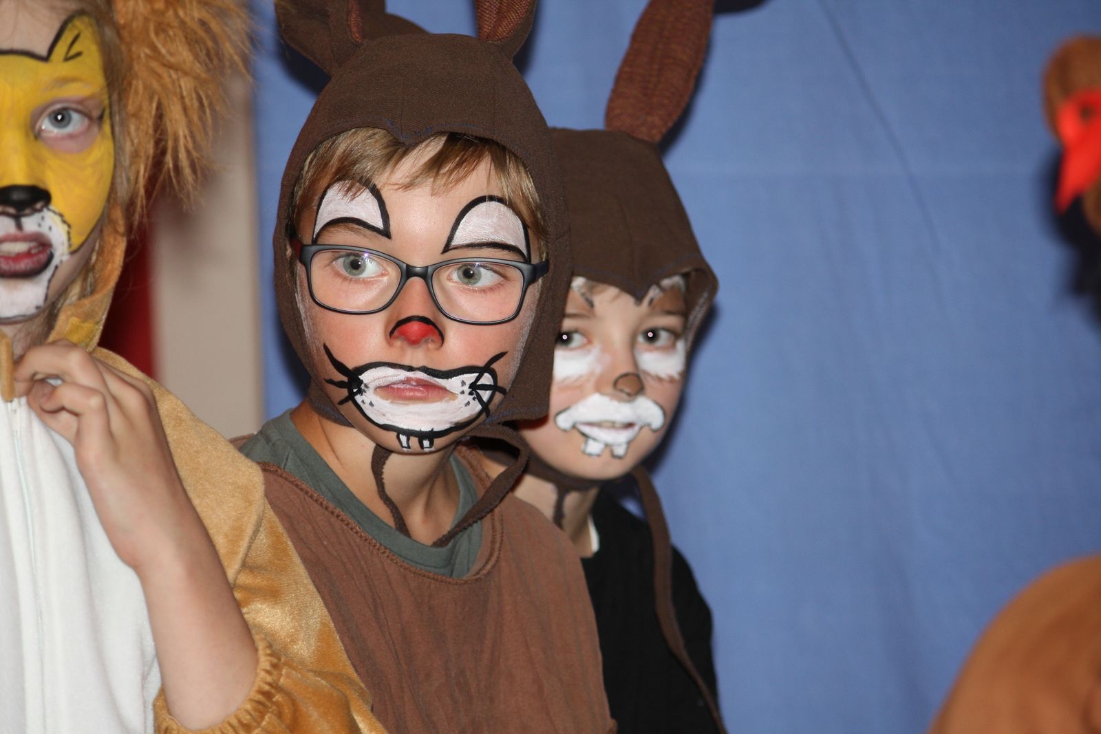 Das Theaterstück machte allen Zuschauerinnen und Zuschauern deutlich, dass in der Schule nicht nur Lesen, Schreiben und Rechnen im Vordergrund stehen, sondern auch die Begabungen, Fähigkeiten und Interessen, die die Kinder schon mitbringen. Dafür hatte unsere 4. Klasse unter der Leitung ihrer Klassenlehrerin viel geprobt, Texte auswendig gelernt und geübt, laut und deutlich zu sprechen und ihre Rollen mit Mimik und Gestik gut umzusetzen: