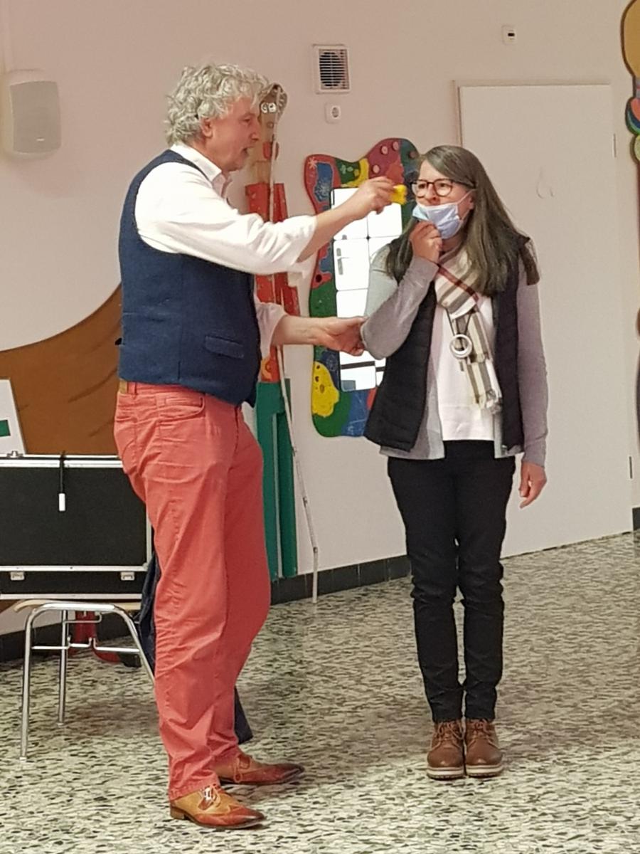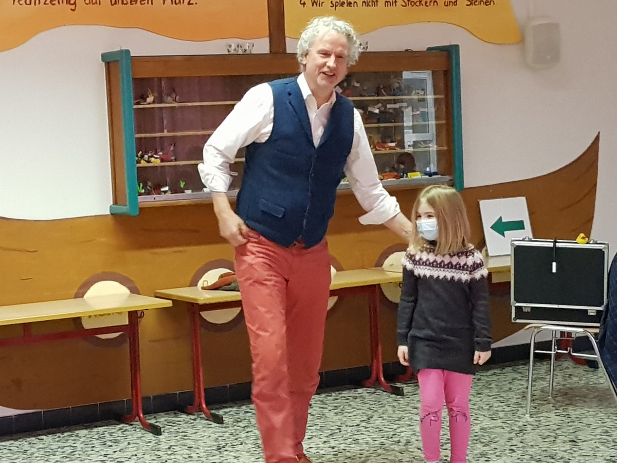 In einer zweiten Show überraschte er unsere 2., 3. und 4. Klassen und deren Klassenlehrerinnen. Auch die Kinder dieser Klassen applaudierten laut und begeistert.