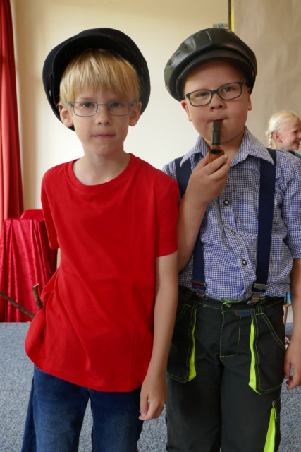 Kurz vor den Ferien präsentierte die Klasse 1a ihr Theaterstück „Jim Knopf und Lukas der Lokomotivführer“. Die SchülerInnen der Klasse 4 unterstützten die Darsteller und spielten die wilden Piraten. Mit großem Staunen und viel Freude verfolgten die anderen Klassen das Geschehen auf der Bühne. Dort waren gefährliche Drachen, Emma die Lokomotive, Lummerland mit seinen Bewohnern und viele weitere spannende Figuren zu sehen. Wird es Jim und Lukas gelingen, die Prinzessin LiSi zu befreien? Diese Frage beschäftigte die Kinder in der Pausenhalle bis zum Schluss, als es zum spannenden Kampf mit Frau Mahlzahn kam. Als der Vorhang fiel, brach Applaus aus und alle gratulierten den SchauspielerInnen zu dieser gelungenen Aufführung.