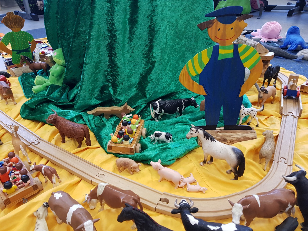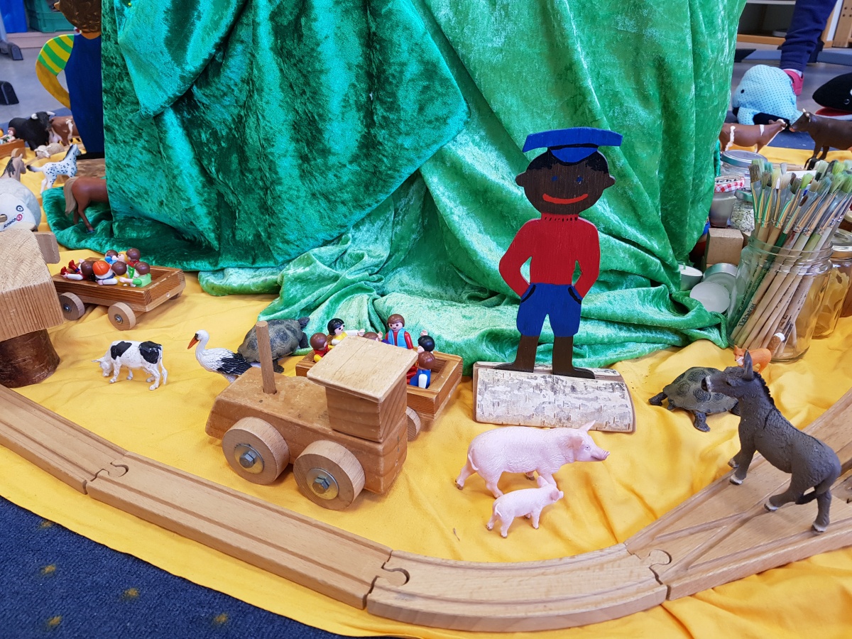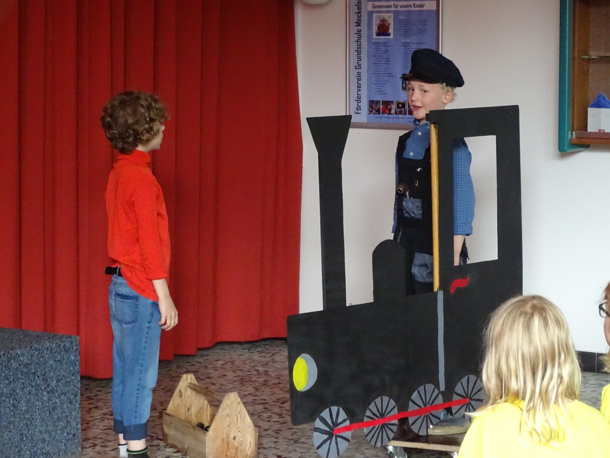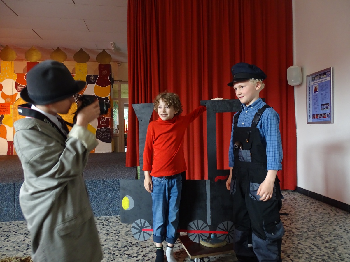 Zur Vorbereitung auf die Aufführung wurde manchen Klassen von ihren Klassenlehrerinnen das Buch vorgelesen. Frau Pohls Klasse 2a las sogar selbst verkürzte Kapitel und baute sich mitten in die Klasse eine Lummerland-Landschaft.