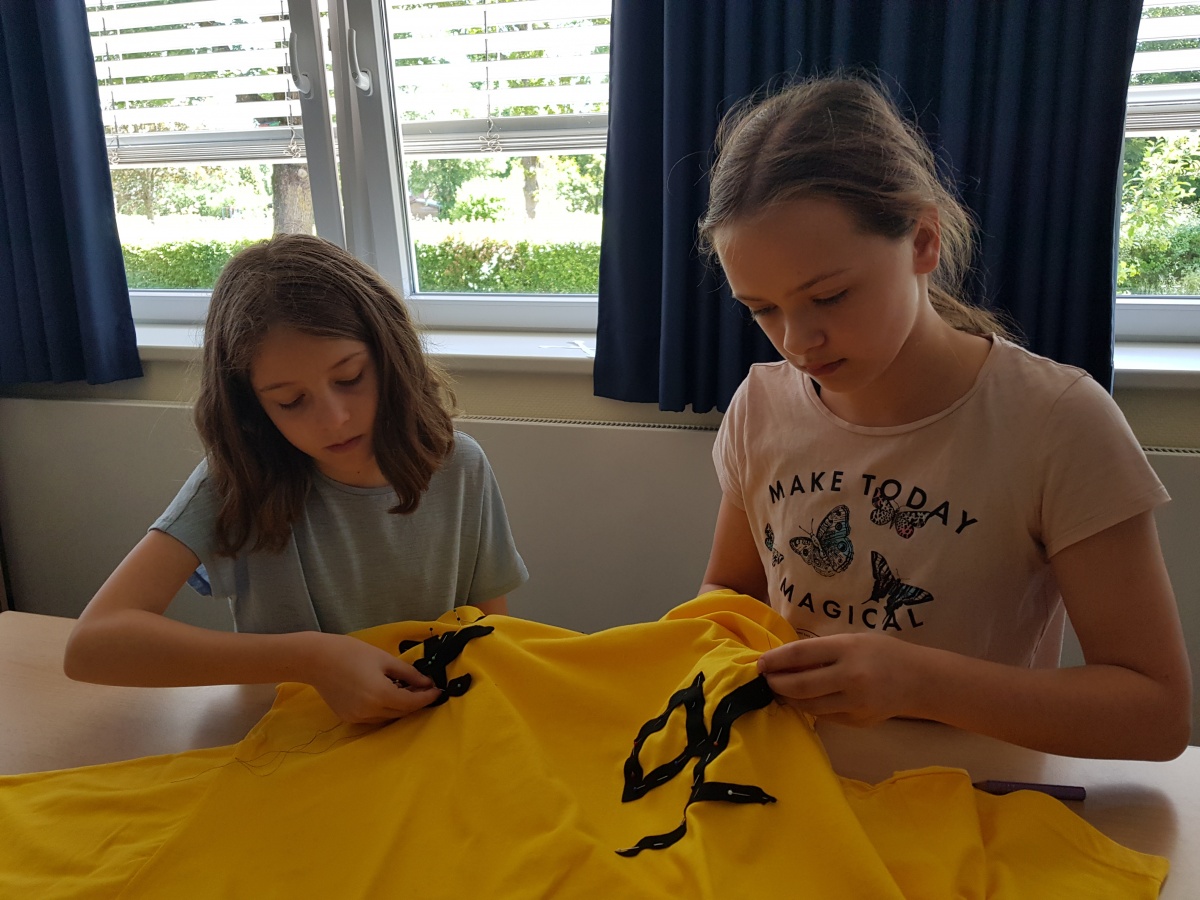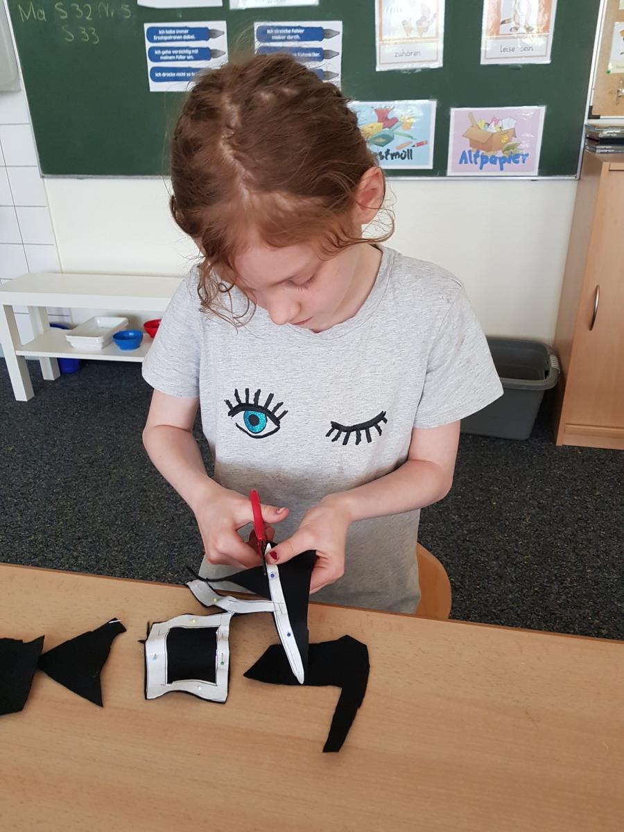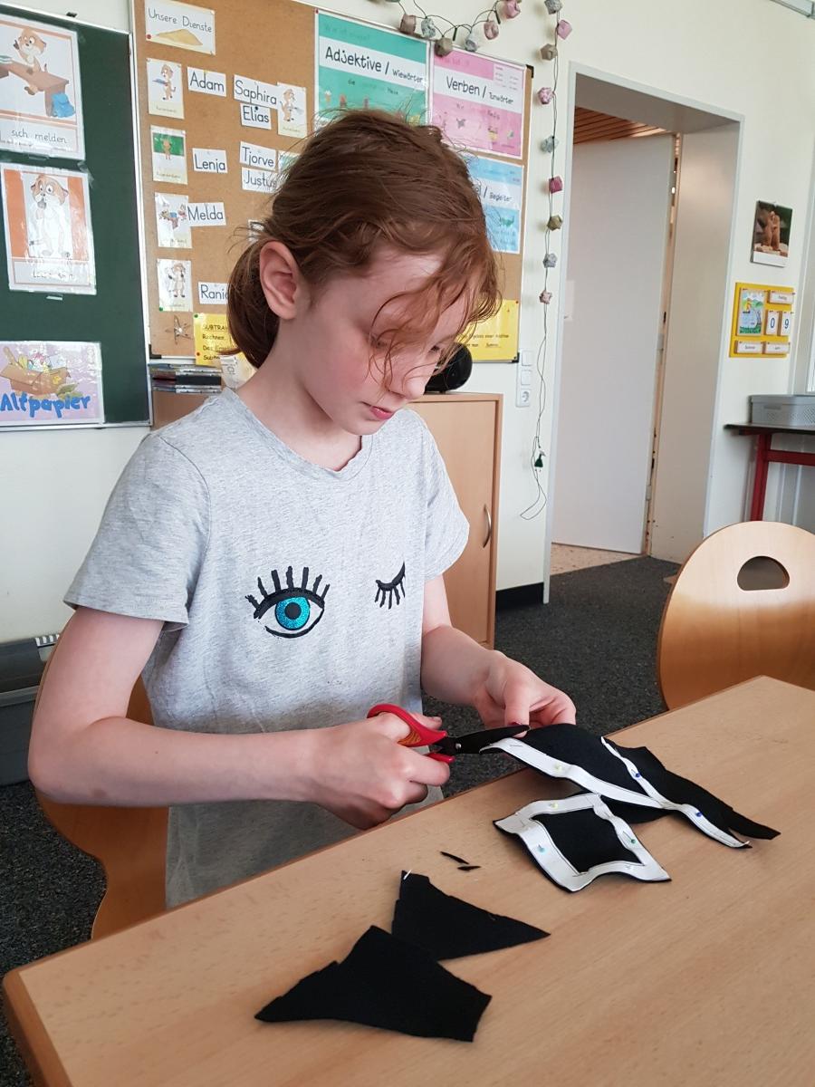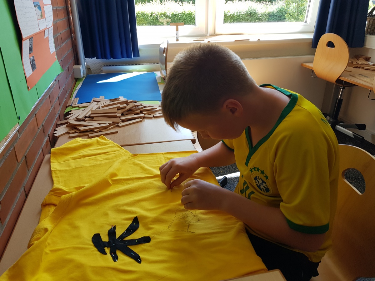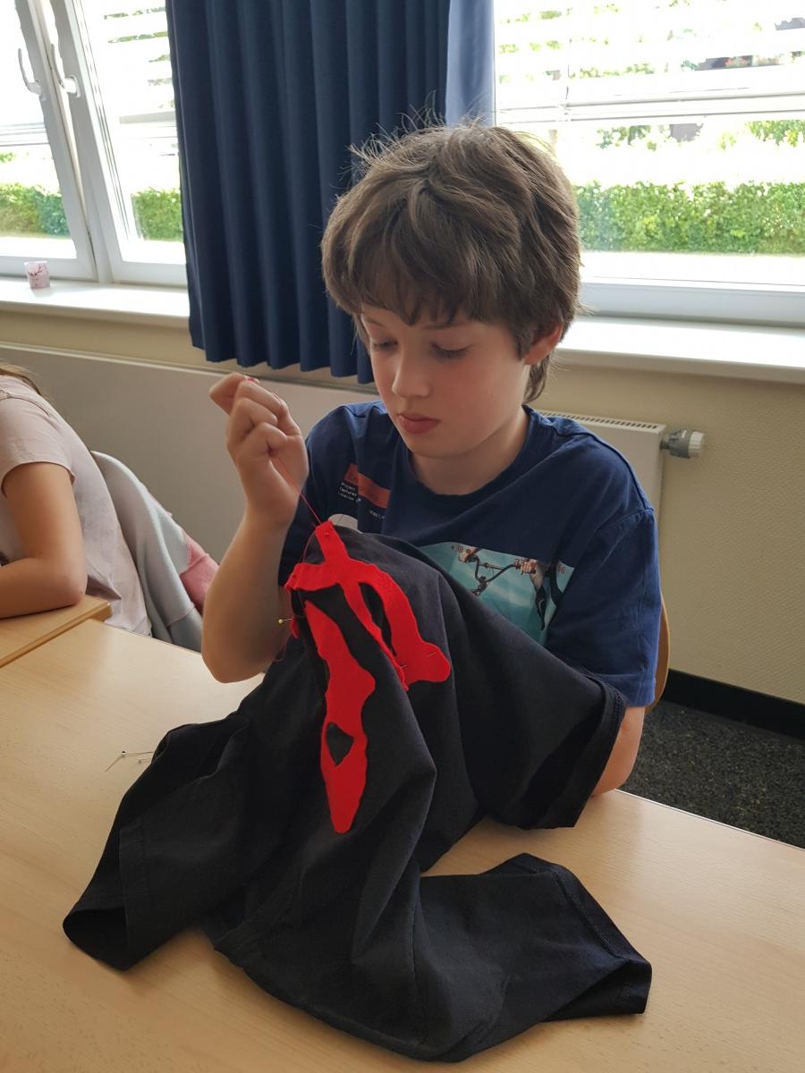 Manche Kinder unserer Klasse 4a nähten sich ihre Totenkopf-T-Shirts unter Anleitung von Frau Pohl selbst.