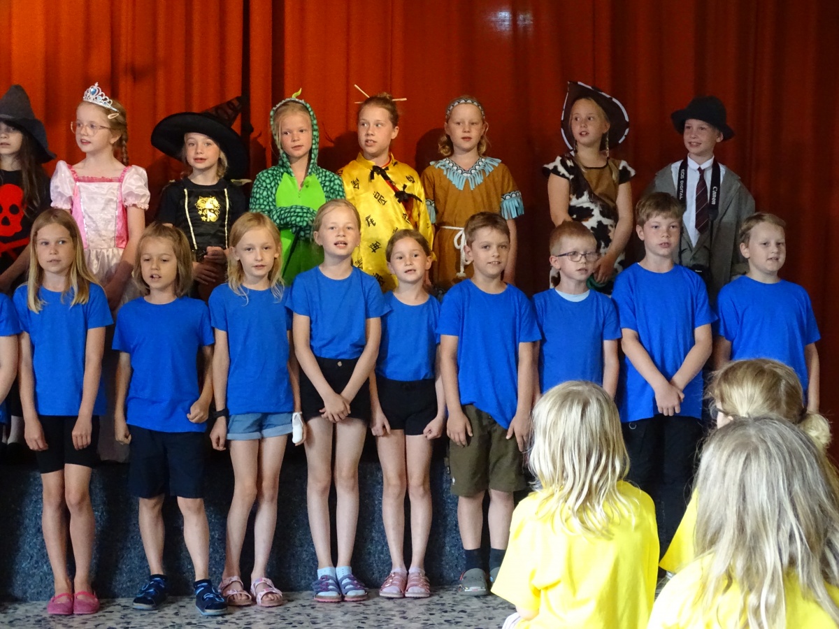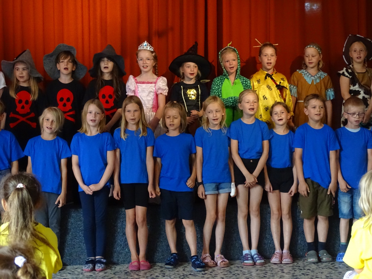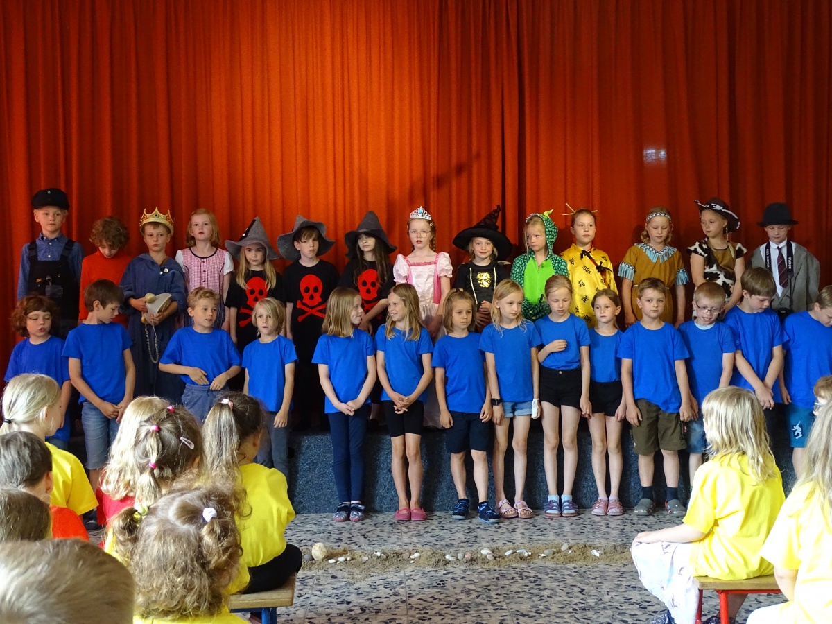 Zum Abschluss dieses Schuljahres schlossen sich alle Klassen unserer Schule für ein gemeinsames Stück zusammen: Sie spielten und sangen „Jim Knopf und Lukas der Lokomotivführer“.