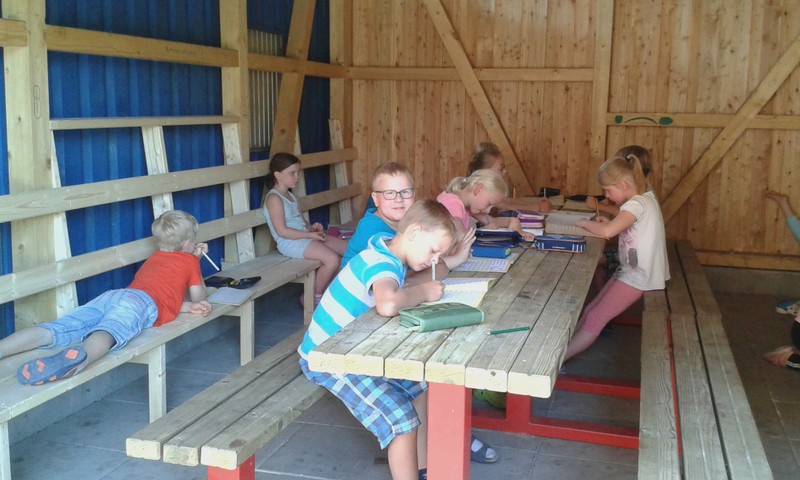Seit einiger Zeit haben wir nicht nur einen Container für unsere Ein- und Hocheinräder, wir haben nebenan auch noch eine überdachte Möglichkeit zum gemütlichen Zusammensitzen bekommen. Hier können wir uns an der frischen Luft treffen, selbst wenn es regnet oder die Sonne vom Himmel brennt. Leider nutzten dies auch Menschen, die dann unseren Tisch mit einem großen Brandfleck und die Balken mit Schmierereien verließen. Deshalb haben die Mitglieder unseres Fördervereins Handwerksbetriebe der Umgebung angesprochen, mit Freiwilligen gemeinsam die Wände vertäfelt und den Eingang mit einem großen Gargentor versehen.