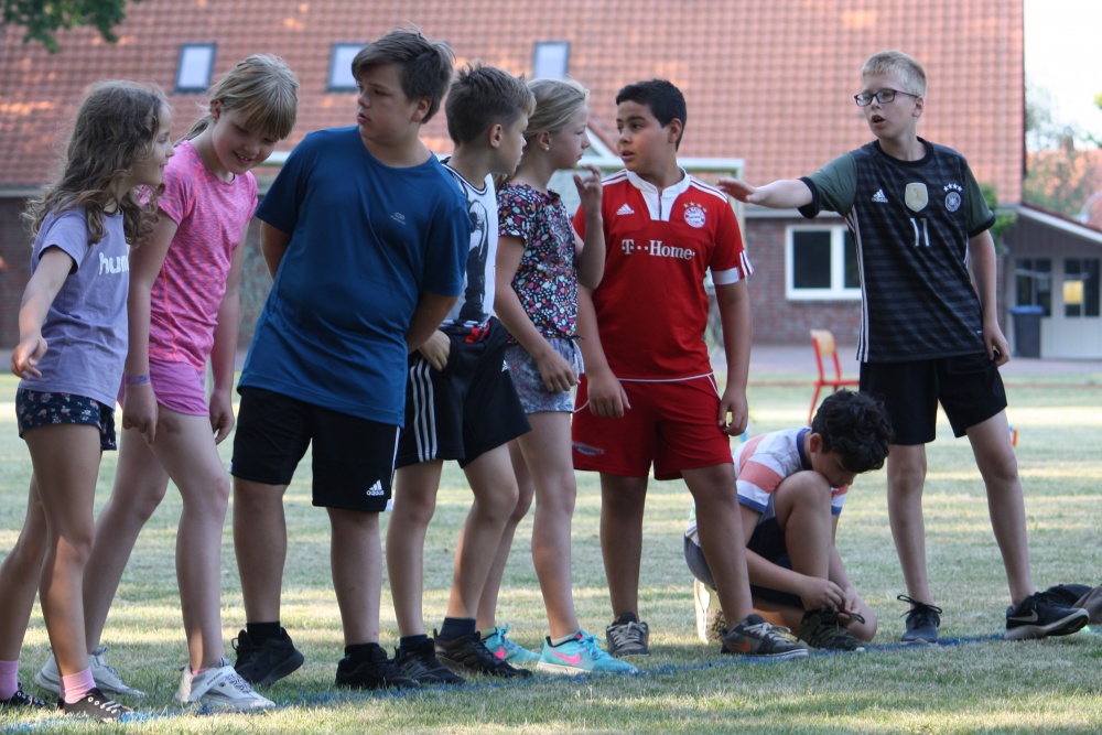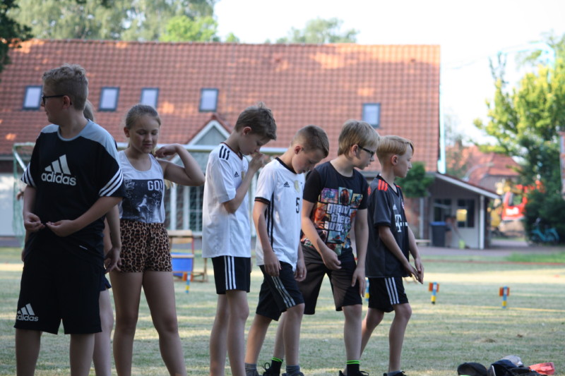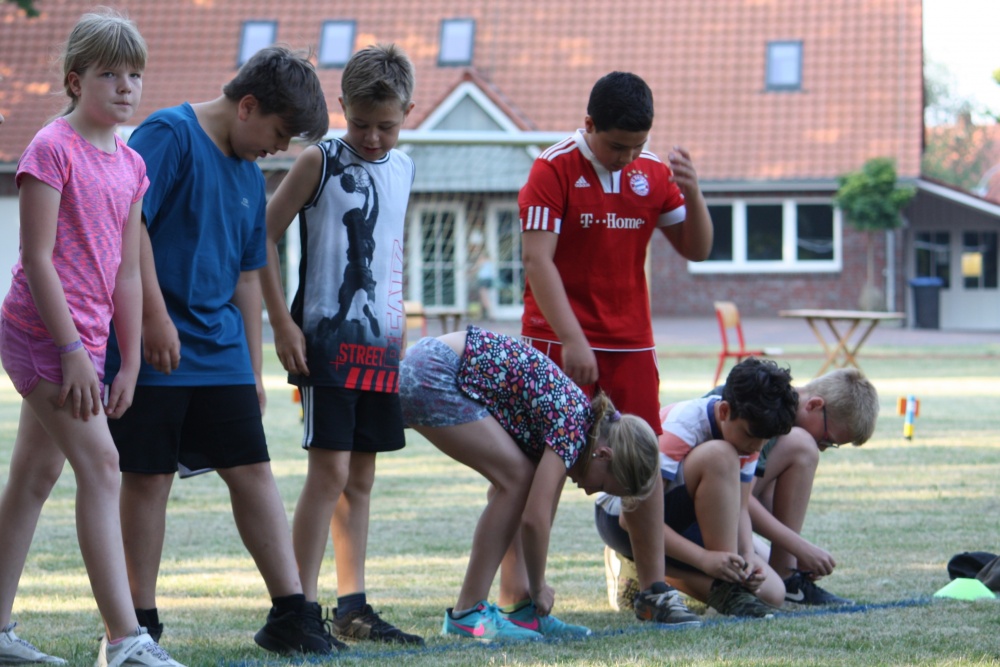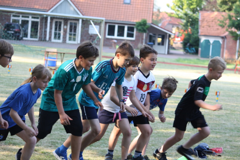Als dann um 9 Uhr alle Helferinnen und Helfer aus der Elternschaft angekommen und eingewiesen waren, konnten die Kinder ihre sportlichen Fähigkeiten im Weitsprung, im Werfen und je nach Alter im 30- bzw. 50- Meter-Lauf zeigen.