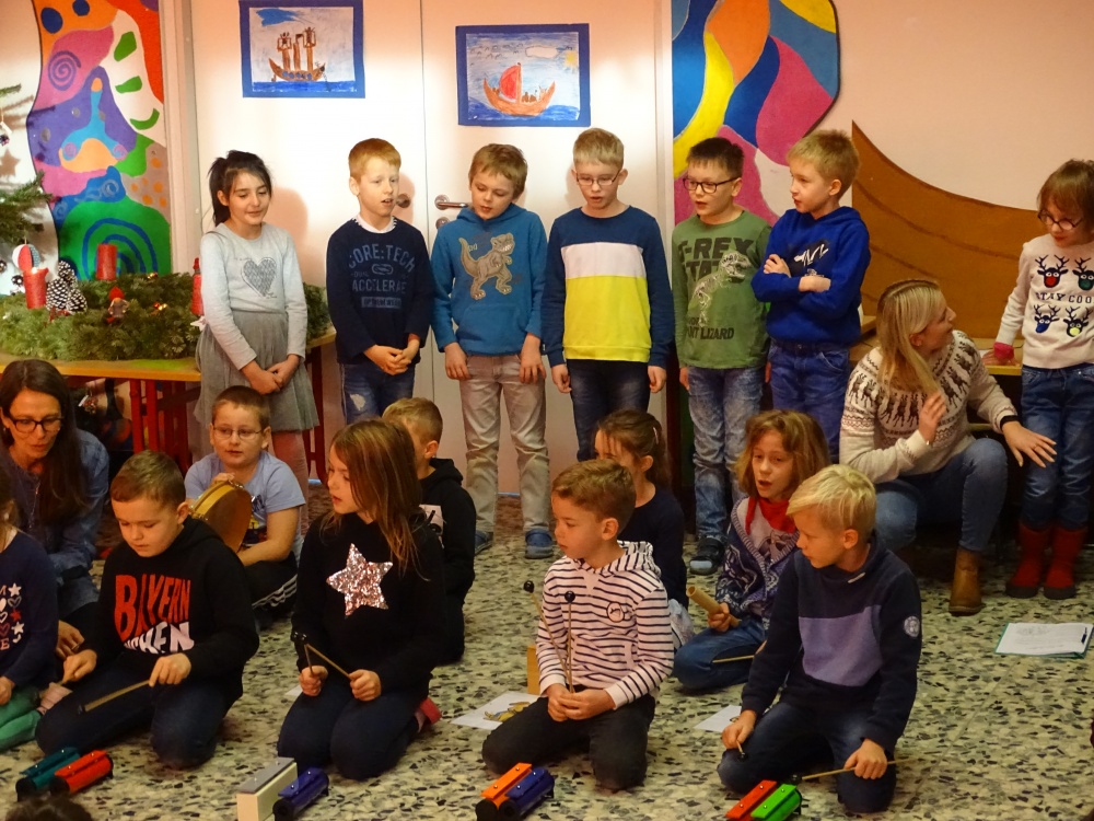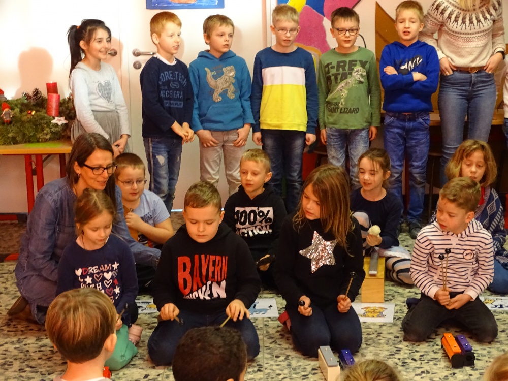 Schon lange machen unsere Klassen 2a und 2c der HLS miteinander Musik. Heute konnten sie wieder einmal zeigen, was sie unter der Leitung von Herrn Zeisig gelernt hatten. Gar nicht so einfach, an verabredeter Stelle im Lied 'Die Tiere im Stall' den Einsatz zu finden und die Xylophonstäbe zu treffen!