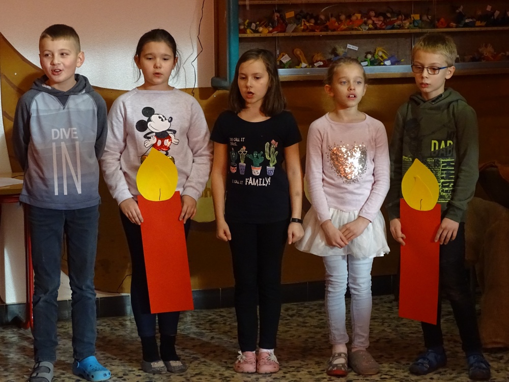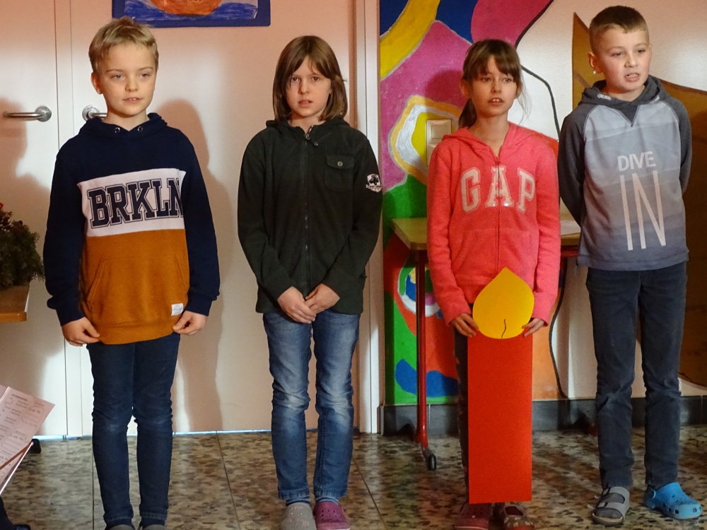 Die Kinder aus der Klasse 3b hatten im Religionsunterricht über die Bedeutung des Adventslichtes gesprochen und trugen uns das Gedicht 'Die vier Adventskerzen' vor. Passend dazu sangen sie das Lied 'Wir zünden die erste Kerze an'. Auch sie konnten sich über einen begeisterten Applaus freuen.